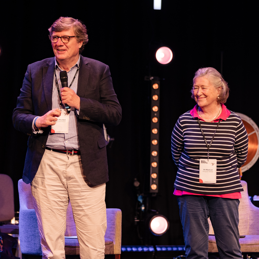 John and Eleanor Mumford were the first to bring the Vineyard movement to the UK and Ireland, having established the South West London Vineyard in 1987 after training and working with John Wimber in California. They led the UK Vineyard movement for over 20 years and are current leaders of Vineyard Global.